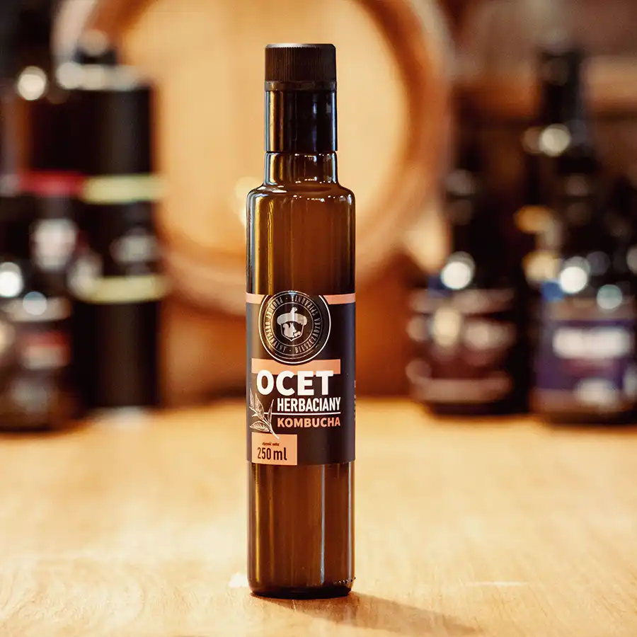 Głównym składnikiem octu herbacianego kombucha jest irańska czarna herbata, która nadaje mu wyjątkowego smaku. W occie wyczuwamy delikatny smak herbaciany łagodnie przechodzący w przyjemnie kwaskowaty.