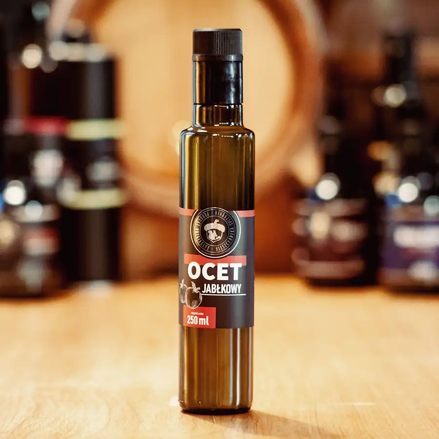 Ocet jabłkowy to jeden z najpopularniejszych octów. Charakteryzuje się lekko kwaśnym smakiem o delikatnie jabłkowej nucie oraz szampańską barwą. Swoją sławę zdobył już wiele lat temu, za sprawą oczyszczającego i bakteriobójczego działania. Dziś z powodzeniem wykorzystuje się w celu poprawienia procesów trawienia oraz jako pomoc w zrzuceniu zbędnych kilogramów.